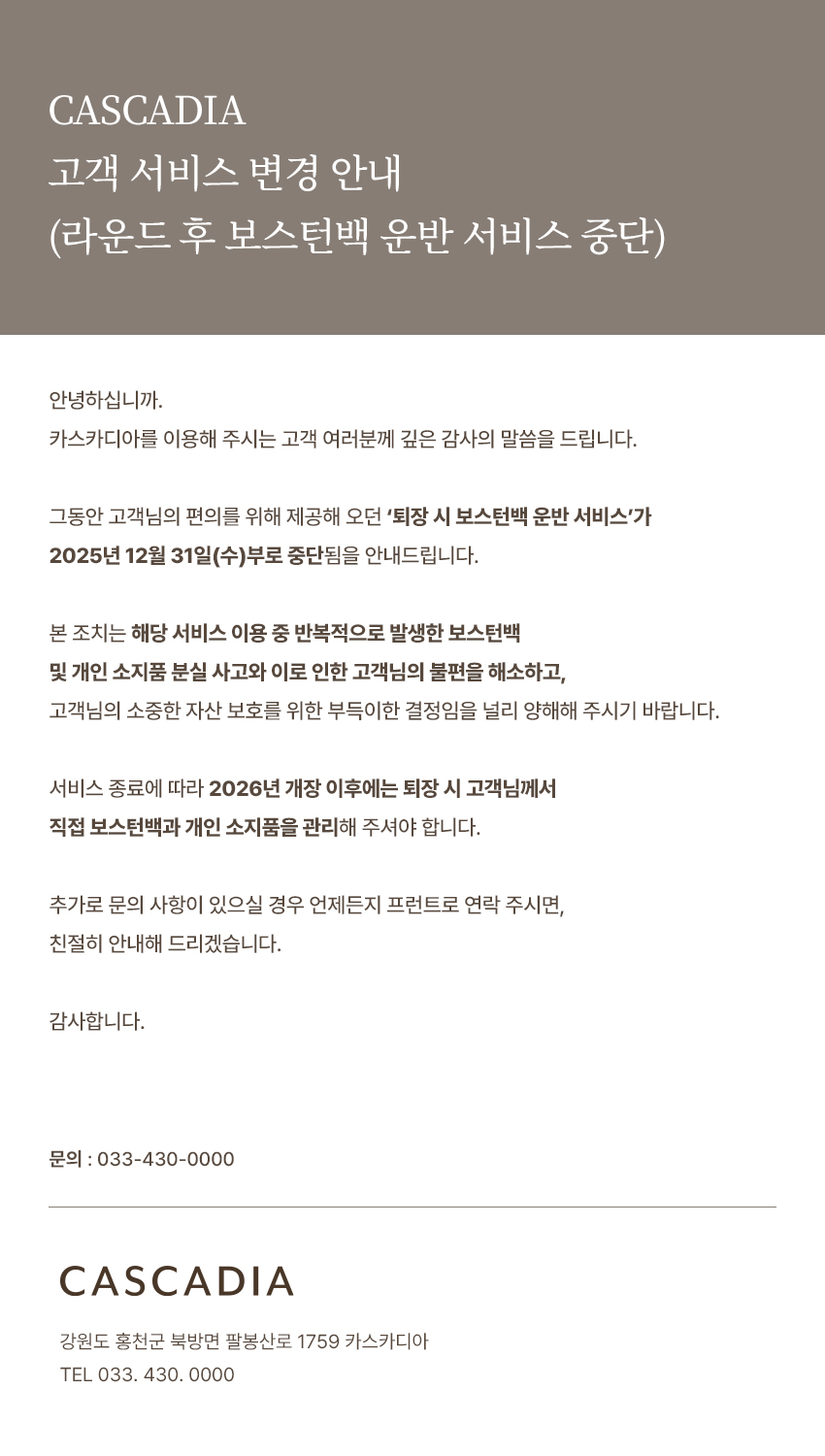 제목CASCADIA 고객 서비스 변경 안내 2025-12-12